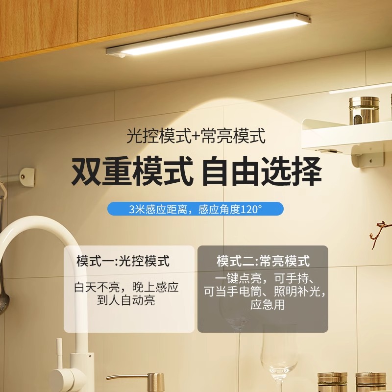 橱柜灯带led酒柜灯充电人体感应灯条磁吸无线自粘厨房鞋柜衣柜灯