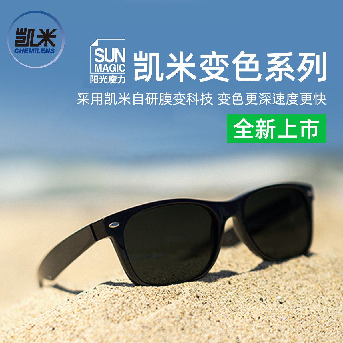 凯米阳光魔力防蓝光感光变灰色紫外线防护近视迅速变色镜片2片J