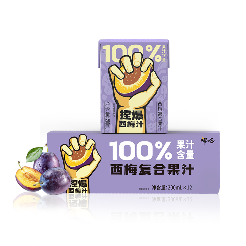 哪吒捏爆100%西梅汁复合果汁饮品200ml*6盒装饮料果汁整箱多规格