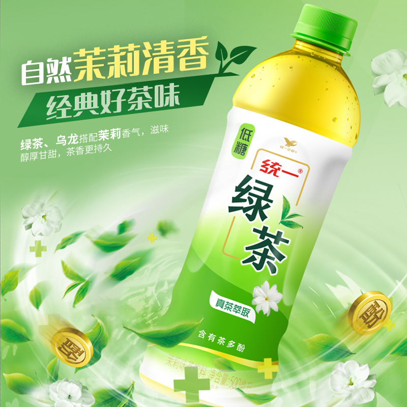 统一绿茶茉莉味瓶装茶饮料500ml*15瓶整箱茶多酚低糖火锅伴侣解腻