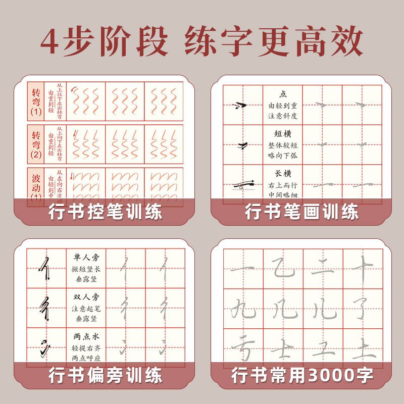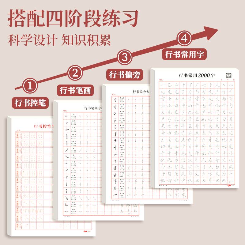 成人【行书速成字帖】行书入门笔画偏旁控笔行书常用3000字练习纸
