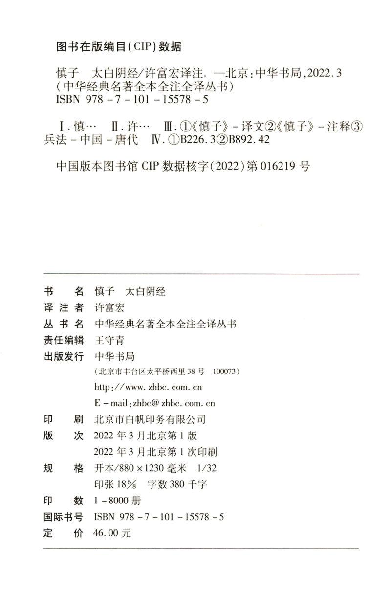 慎子 太白阴经中华经典名著全本全注全译丛书-三全本 许富宏译注 先秦道法思想及唐代军事思 正版书籍中华书局