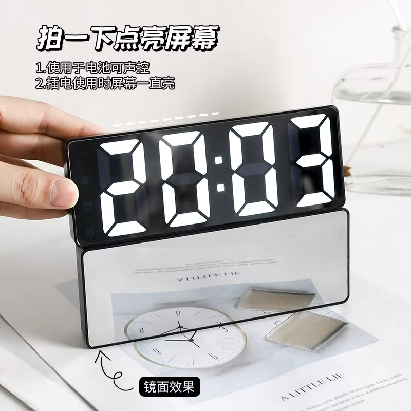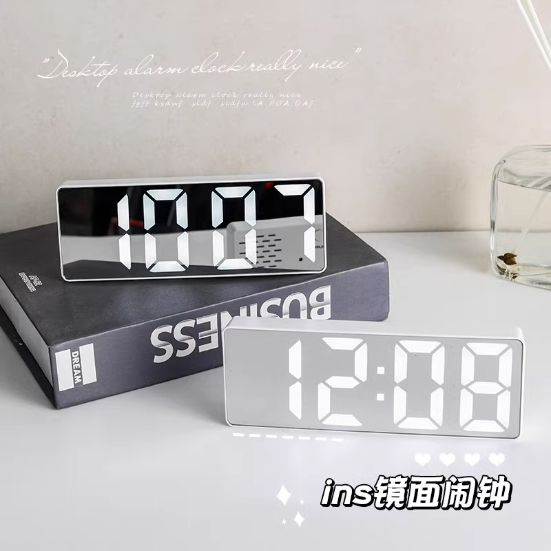 夜光镜面时钟ins桌面钟表时间表摆台式摆件led数字显示器电子闹钟