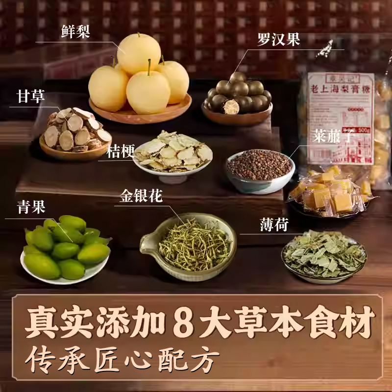 章吴记甘草梨膏糖正品400g润喉糖薄荷正宗老上海梨膏糖官方旗舰店
