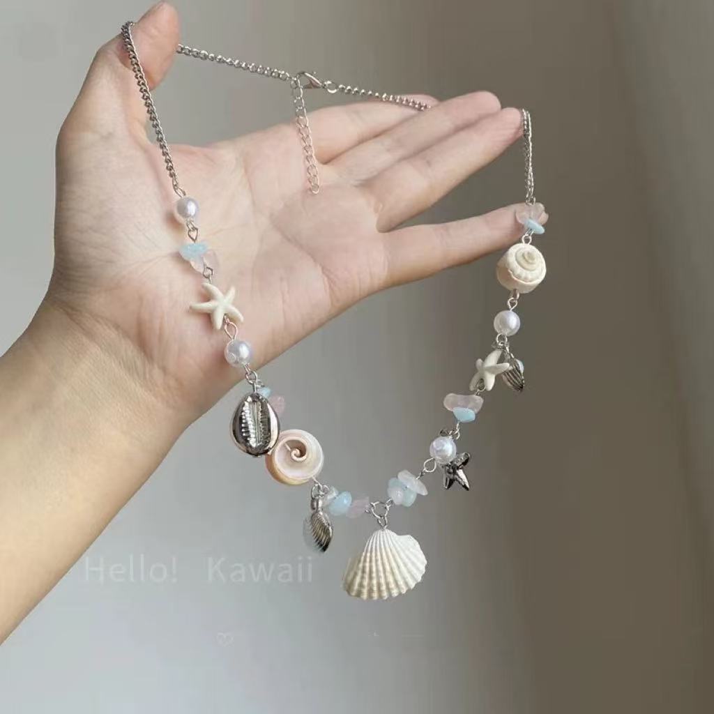 海岛度假风海星海螺贝壳项链夸张海边拍照锁骨链海洋流苏串珠七夕
