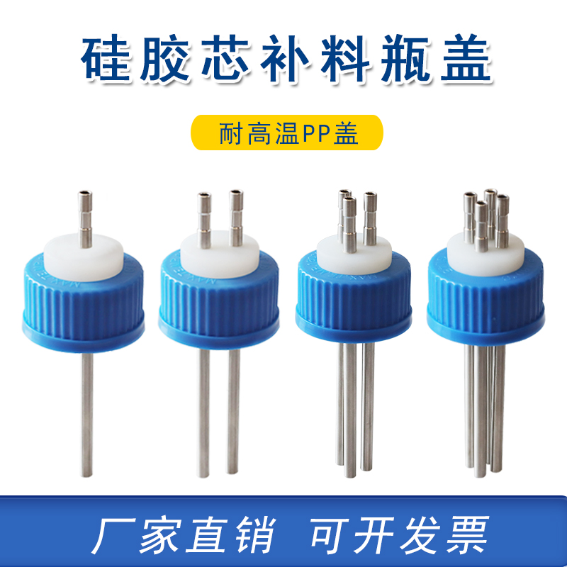 GL45硅胶补料瓶盖单通双通三通四通试剂瓶盖加料盖反应器补料瓶发酵盖顶空盖蜀牛蓝盖试剂瓶盖不锈钢盖可调节