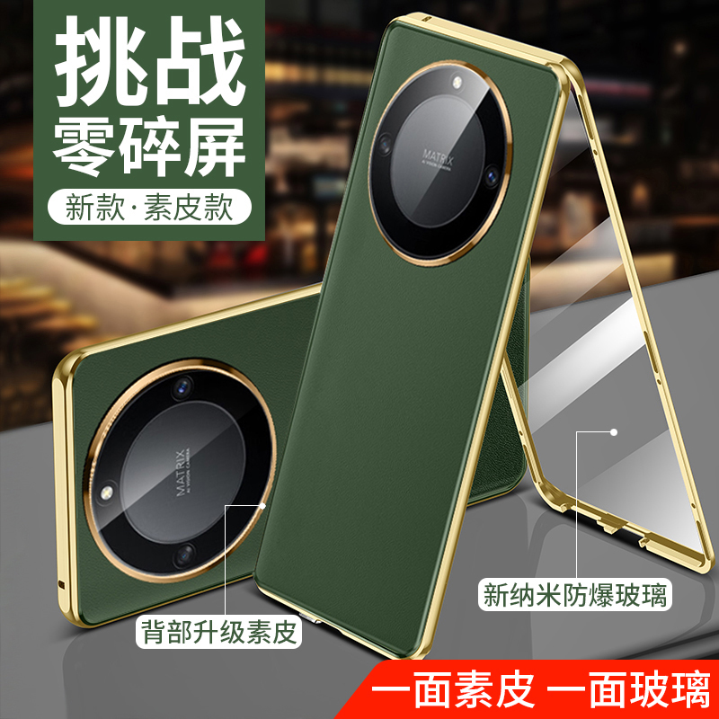 适用荣耀x40手机壳华为荣耀x40GT素皮磁吸双面外壳全包防摔保护壳曲面屏男士女款男透明翻盖个性高级感