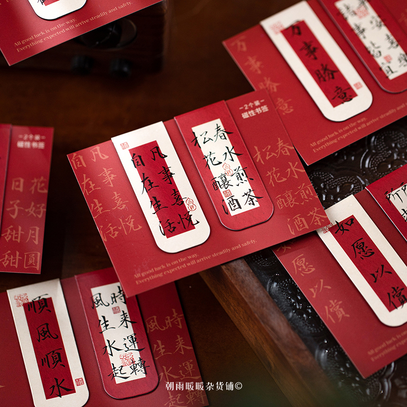人间好运磁性书签高颜值中国风书法励志文字学生创意书夹新年礼物