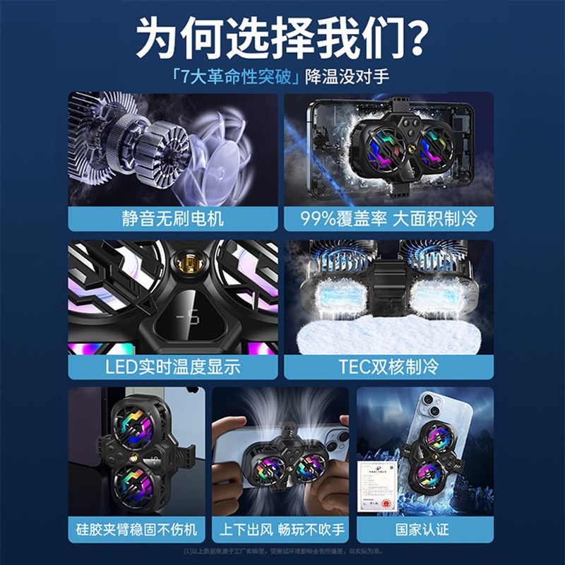2024新款手机散热器直播温控数显半导体制冷手机双核降温神器背夹