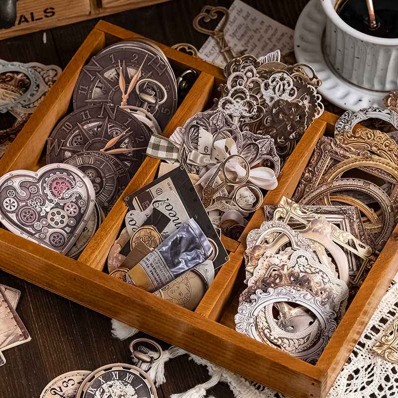 语闲 静觅时光系列复古手帐工具贴纸包25张 高颜值蝴蝶结齿轮相框钟表手账diy背景素材装饰贴纸全套共6款入