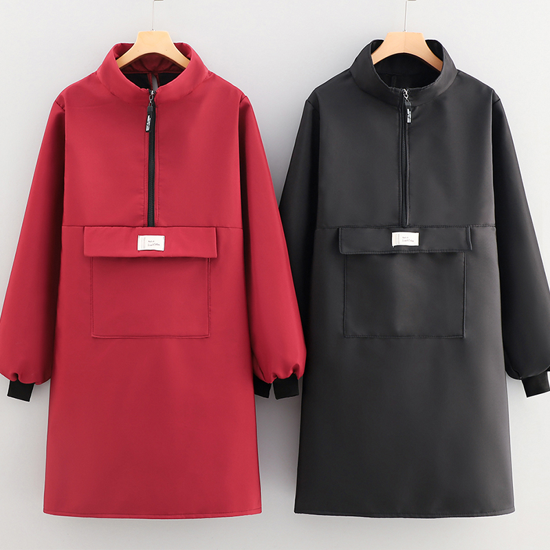 新款外穿罩衣翻领罩衣工作服长袖围裙厨房拉链兜防水防油可外穿
