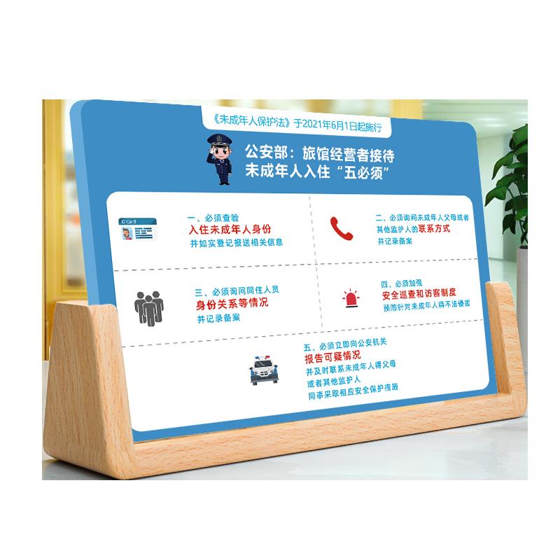 未成年人五必须摆台宾馆住宿登记三严禁标识牌酒店客房温馨提示牌旅馆未成年人入住注意事项安全巡查标语台牌