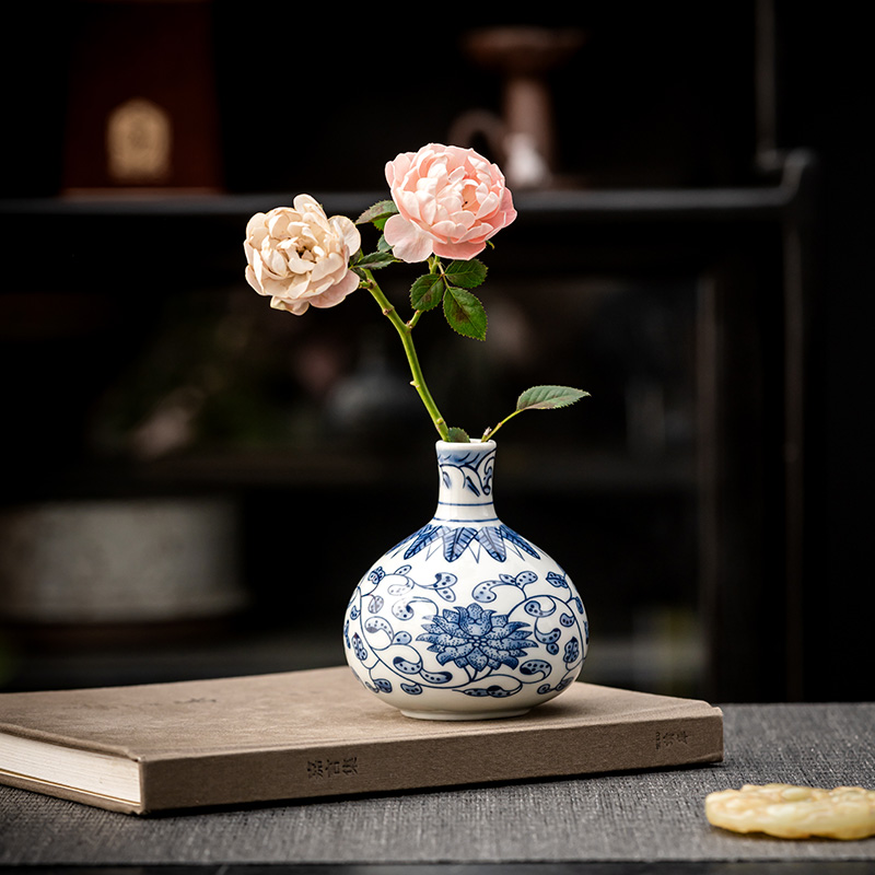 陶瓷小号青花瓷花瓶复古家居摆件创意中式家居小号插花瓶小摆件