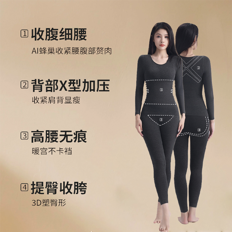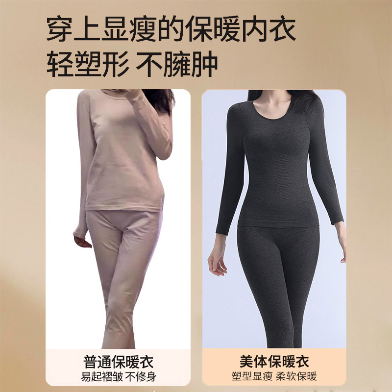 GOSO女士美体塑身轻暖绒内穿打底修身保暖套装