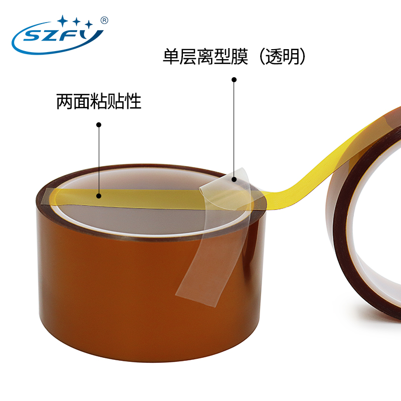 SZFY聚酰亚胺茶金色耐高温绝缘双面胶带 金手指高温胶带无痕不残留可反复使用抗溶剂SMT回流焊双面胶布300度