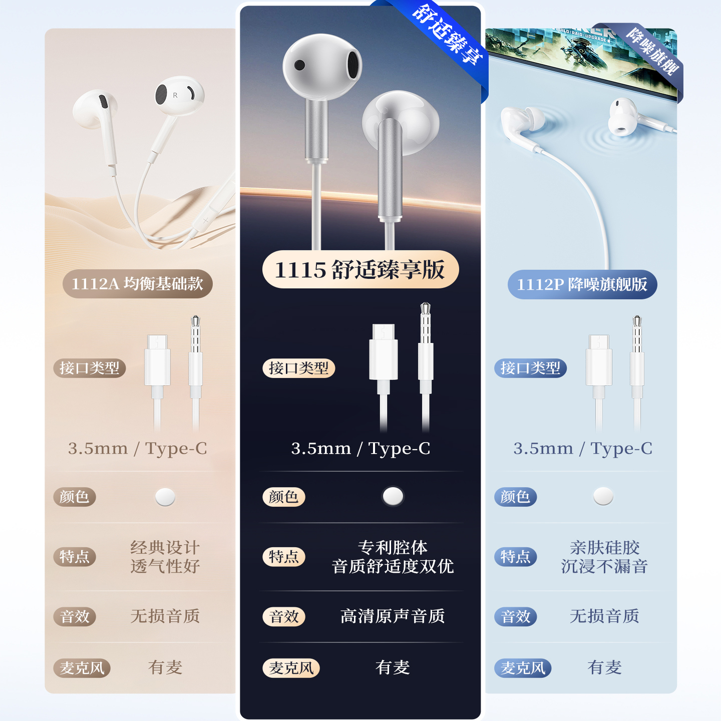 官方正品耳机有线入耳式typec接口高音质降噪K歌睡眠手机平板圆口