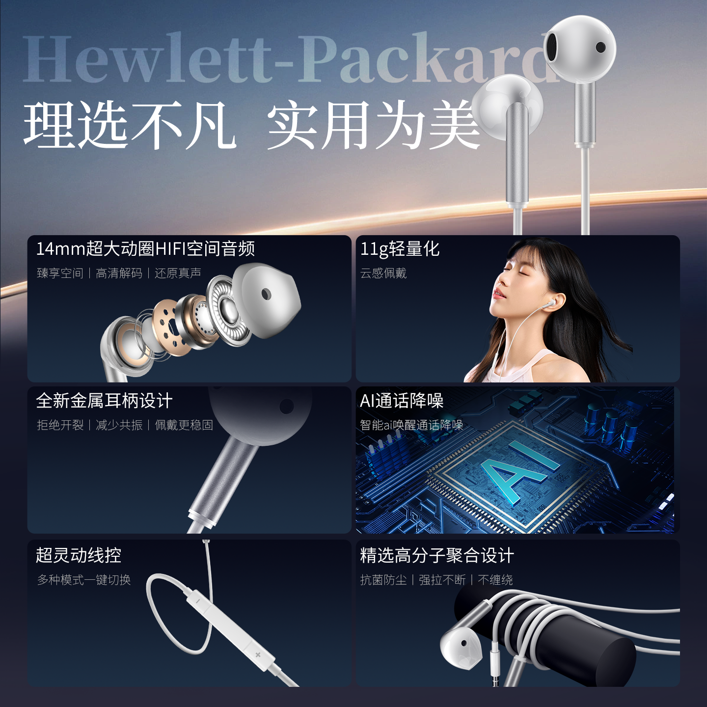 惠普有线耳机半入耳入耳式type-C电脑K歌适用于苹果华为小米苹果