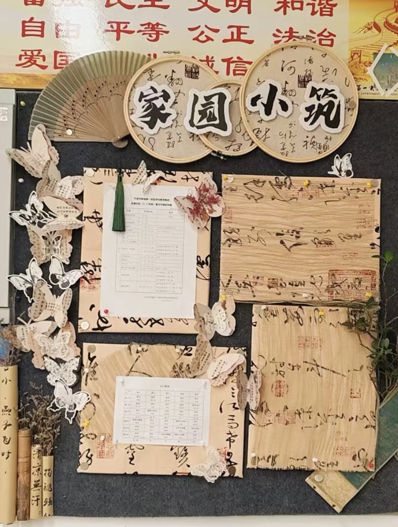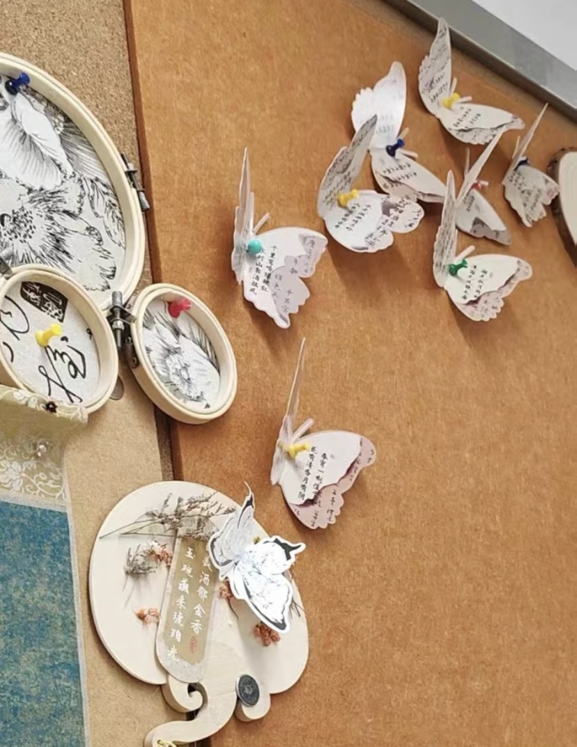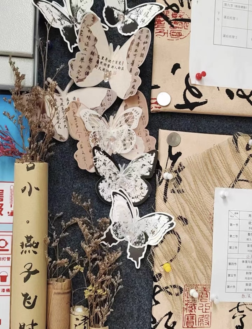 新中式手工国风书法蝴蝶扇子明信片幼儿园水墨江南环创装饰材料