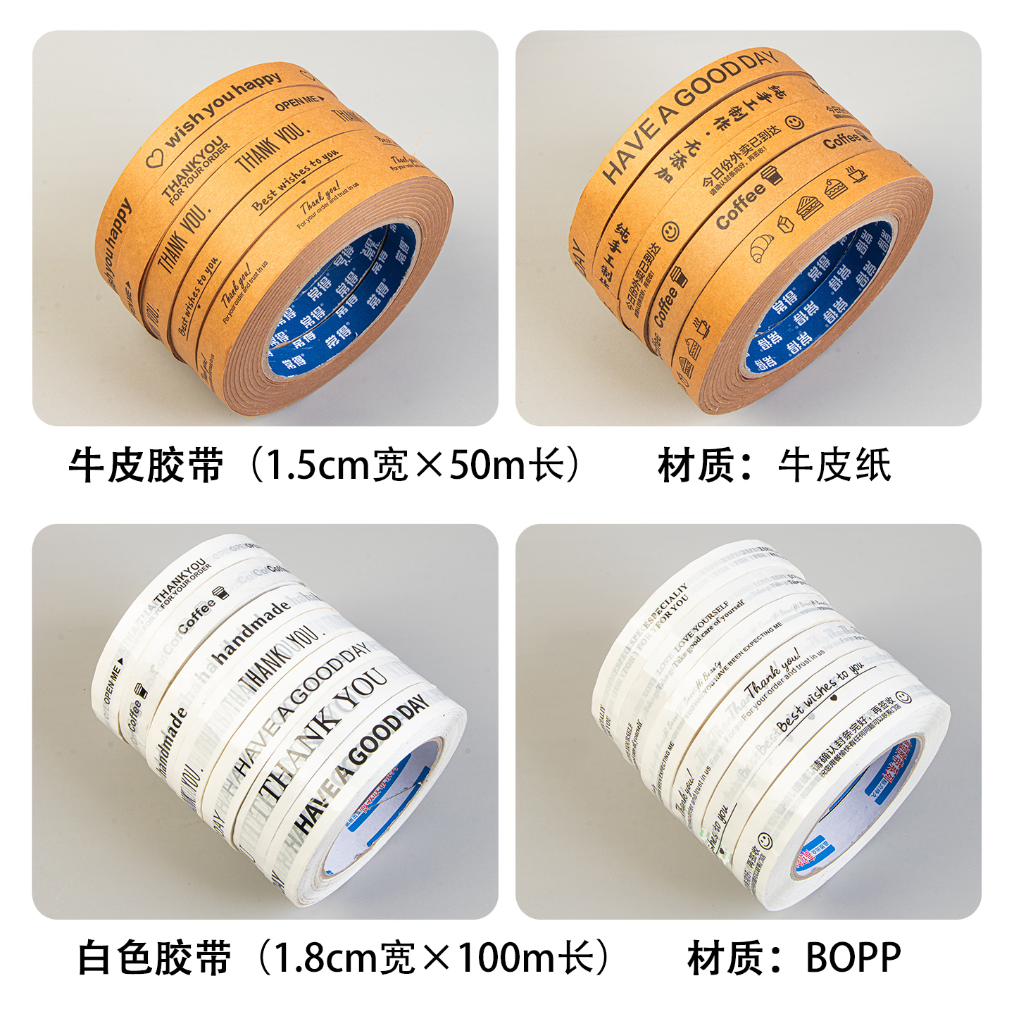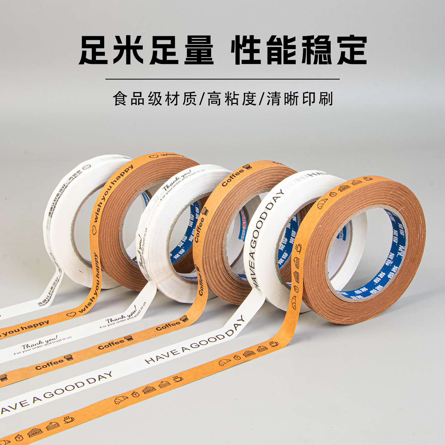 易撕牛皮纸外卖封口胶带奶茶咖啡食品饮料包装打包封口可手撕自粘