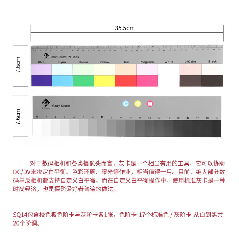 柯达Q14同款SQ14灰阶卡相机镜头色彩还原校正卡20色阶灰度卡尺3nh