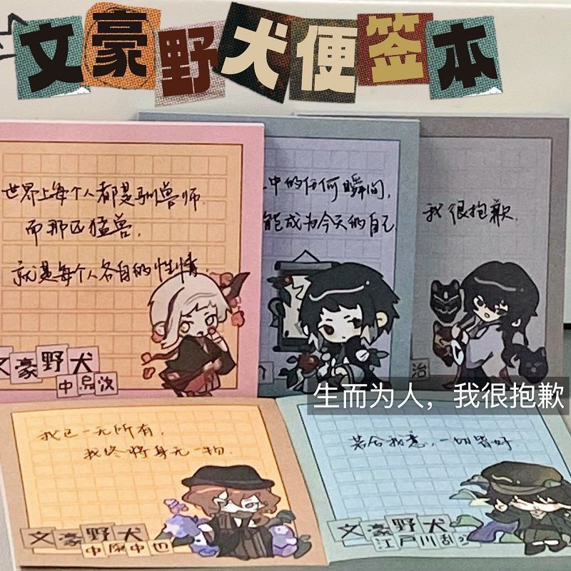 肯音 2025新款文豪野犬便签本高颜值有粘性中原中也太宰治学生记事本备忘便利贴