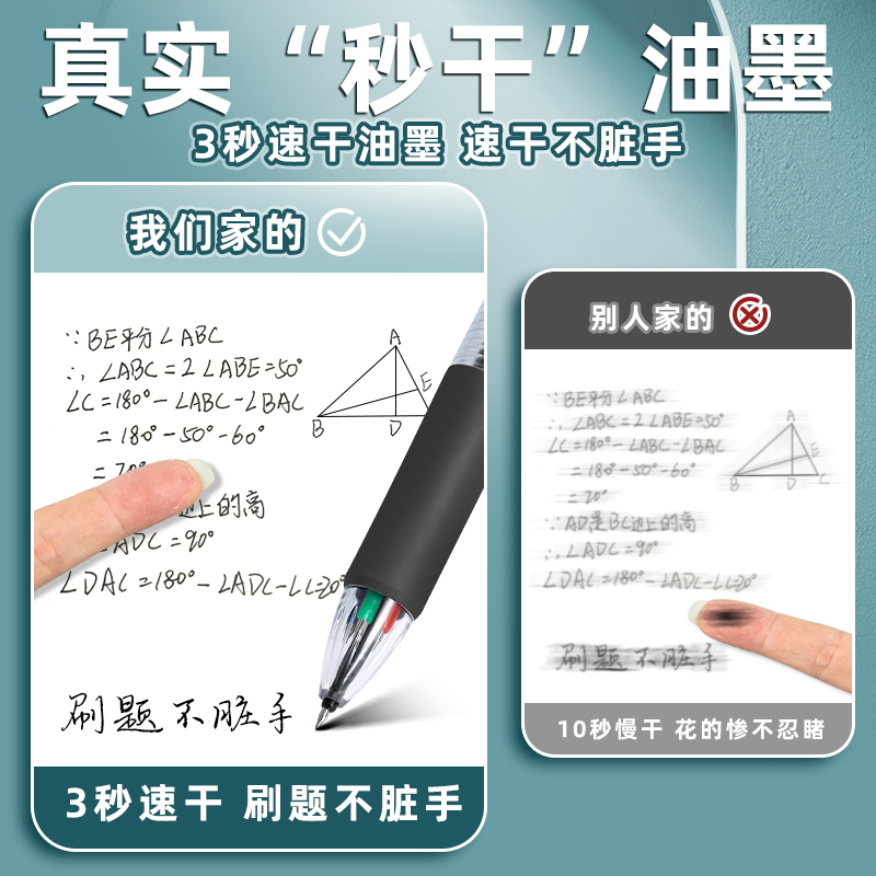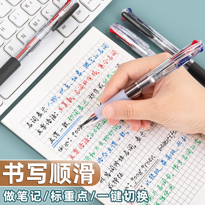 多功能三色笔做笔记专用黑蓝红3色三合一多色笔合一中性笔按动式小学初中生刷题做笔记划重点彩色彩笔圆珠笔