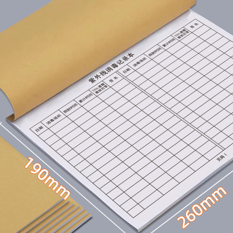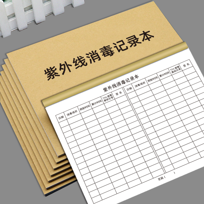 紫外线消毒记录本上翻消毒记录本通用紫外线灯管消毒登记表餐具消杀记录表格公共场所防疫消毒记录本现货定制