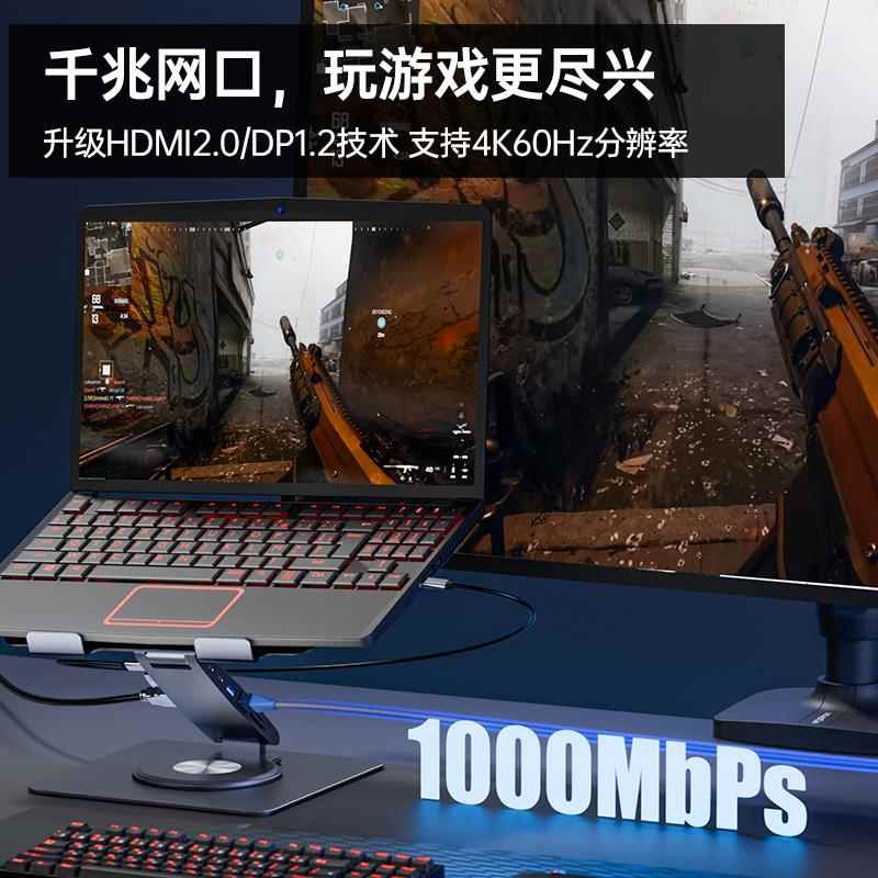 笔记本拓展坞支架多功能扩展高档铝合金增高散热旋转平板电脑支架