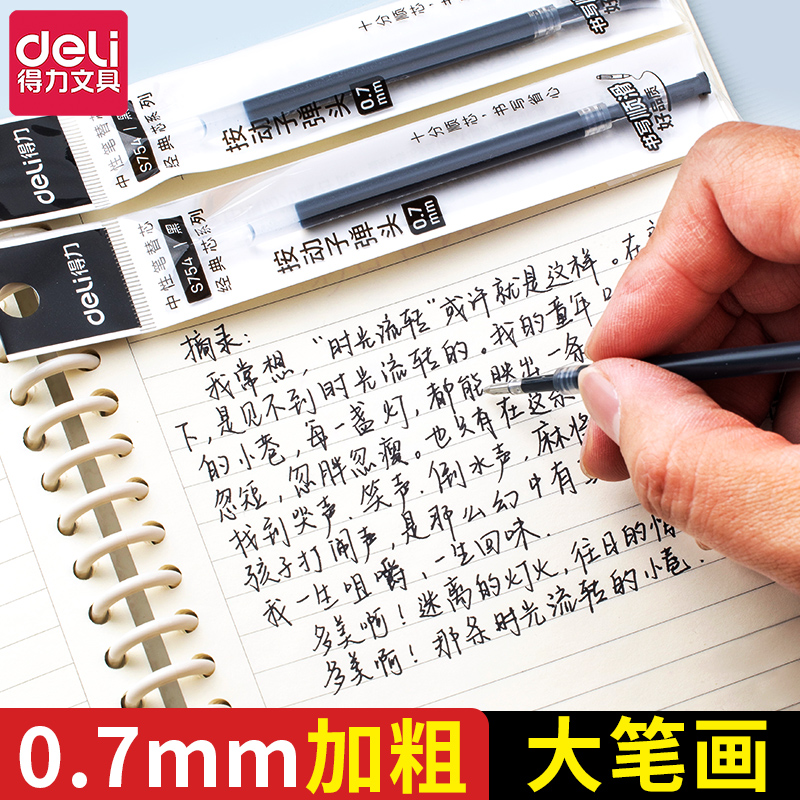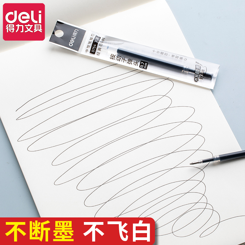 得力0.7按动中性笔芯s754黑色0.7mm子弹头按动中性笔笔芯水性黑笔芯黑笔粗替芯粗头签字笔芯水笔芯碳素笔芯