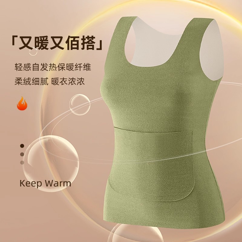 蕉轩德绒无痕保暖背心女款带胸垫免穿文胸加绒加厚打底上衣秋冬季