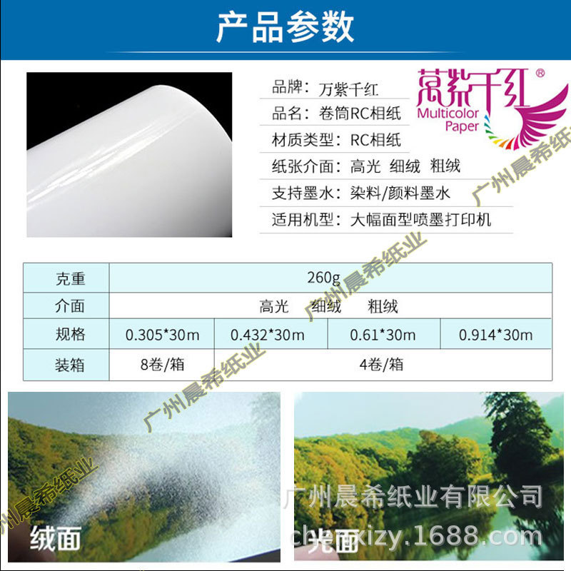 热销万紫千红卷材RC双面防水0.61相片纸24寸36寸高光细绒纸3寸管