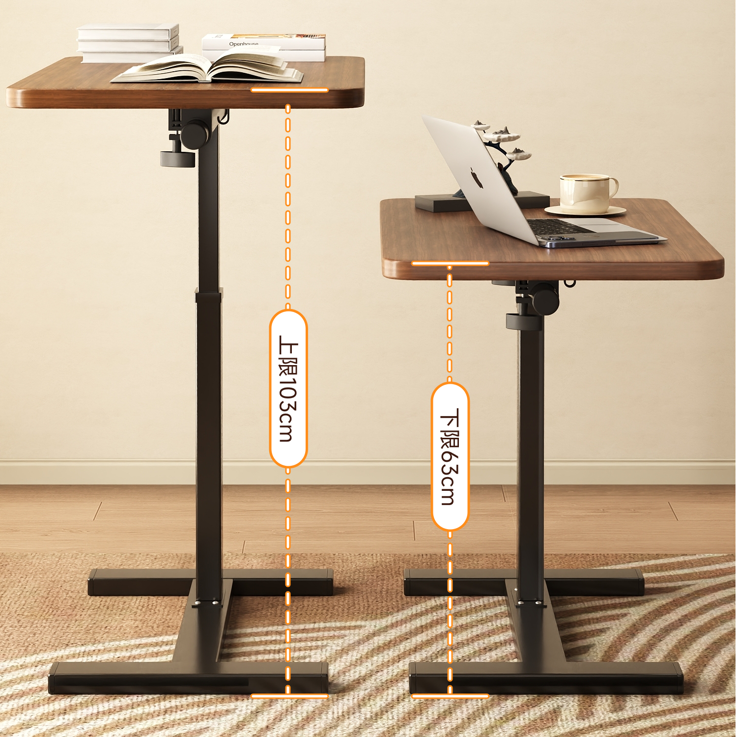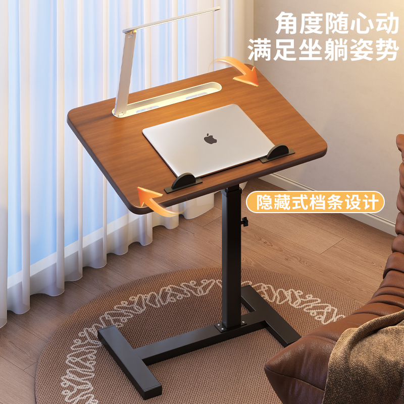 床边桌可移动升降电脑桌带台灯家用卧室床头学习桌写字桌客厅沙发边几可折叠书桌可移动桌子带轮女生简易桌子