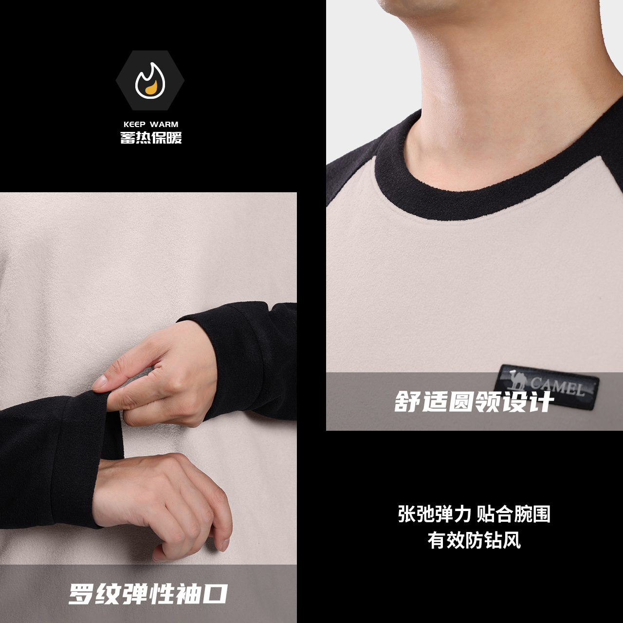 骆驼户外抓绒衣男内搭秋冬长袖T恤220g轻量聚热保暖衣加绒打底衫