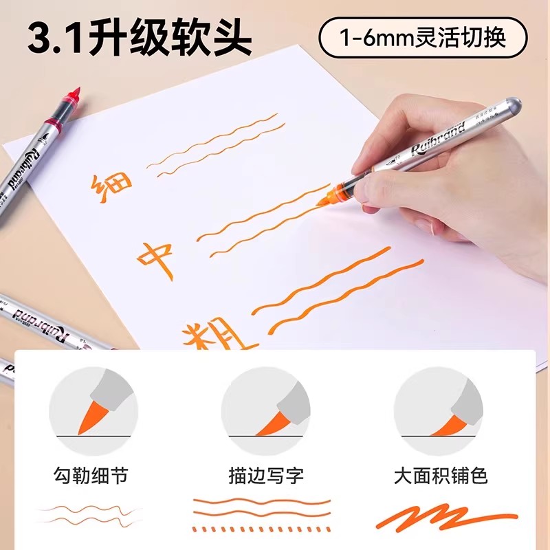 软硬双头丙烯马克笔不透色可叠色软头水彩笔初中生小学生美术专用儿童无毒可水洗画画笔48色笔芯彩色笔36细头