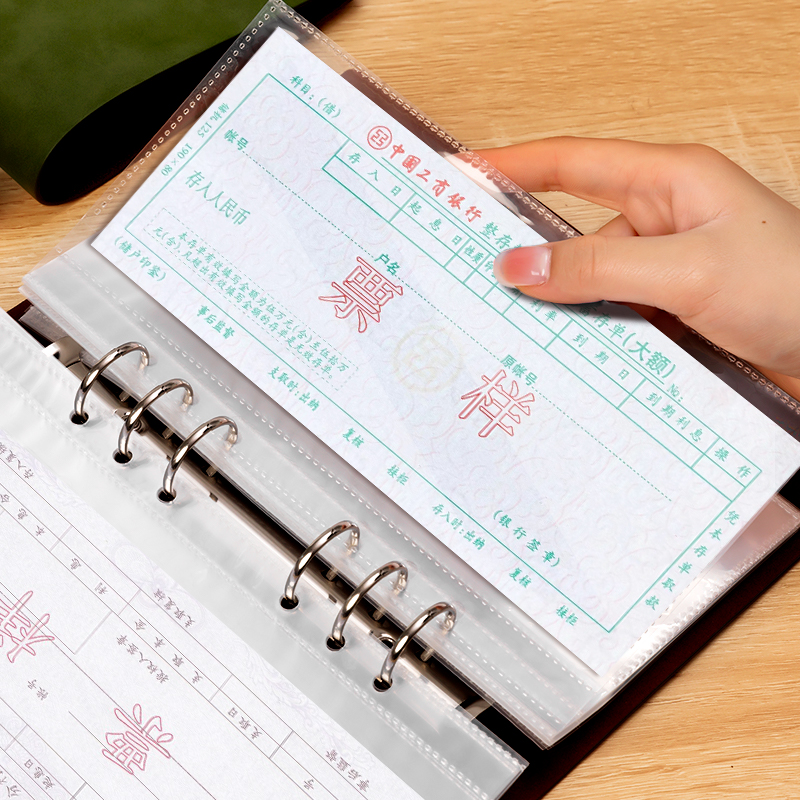 定期存单收纳本活页票据存单夹多功能银行纸质大额单子专用夹收纳袋存折本活期存款储蓄收纳袋透明支票收集册