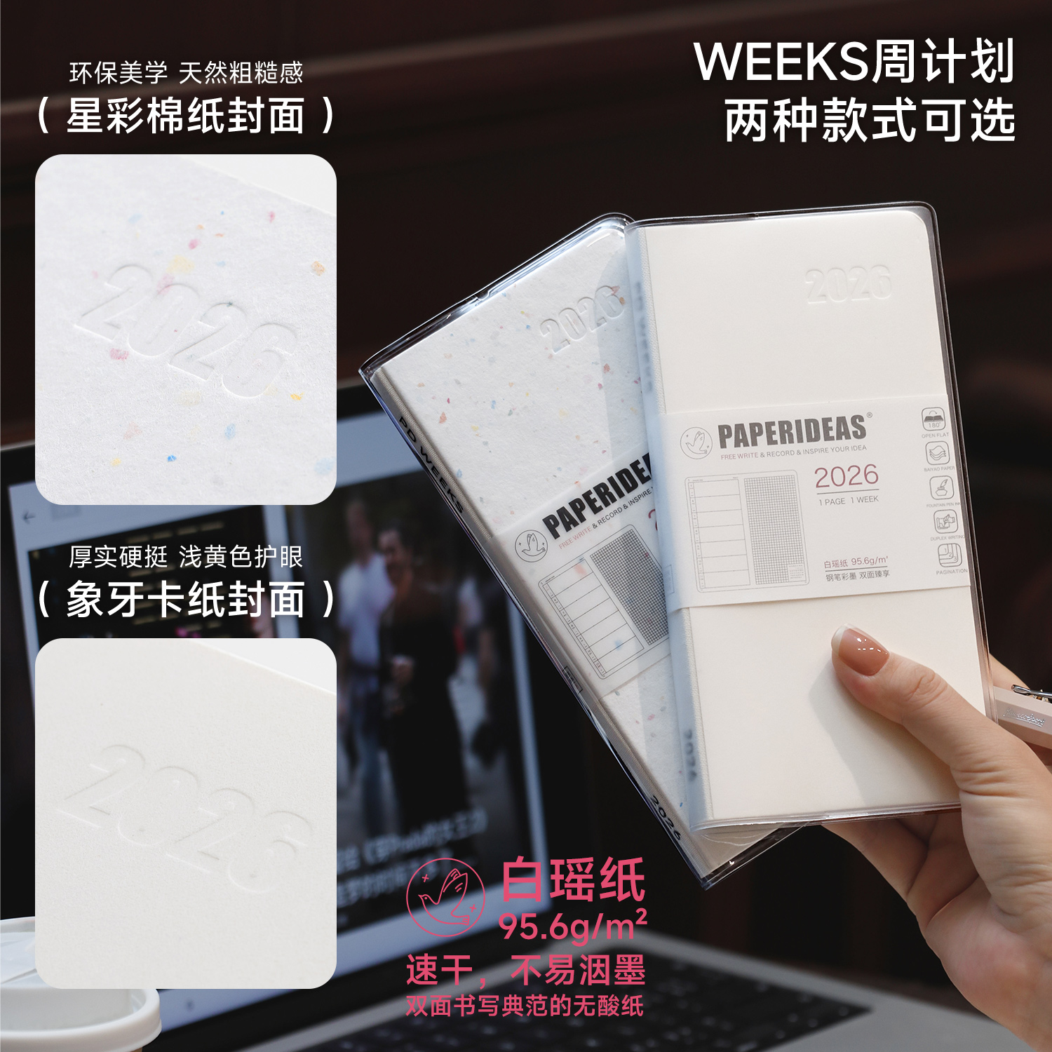 裸背2026非巴川纸weeks手帐本无酸纸本周计划日程本周历48k小高颜值笔记本简约随身学生效率手册定页封套书衣
