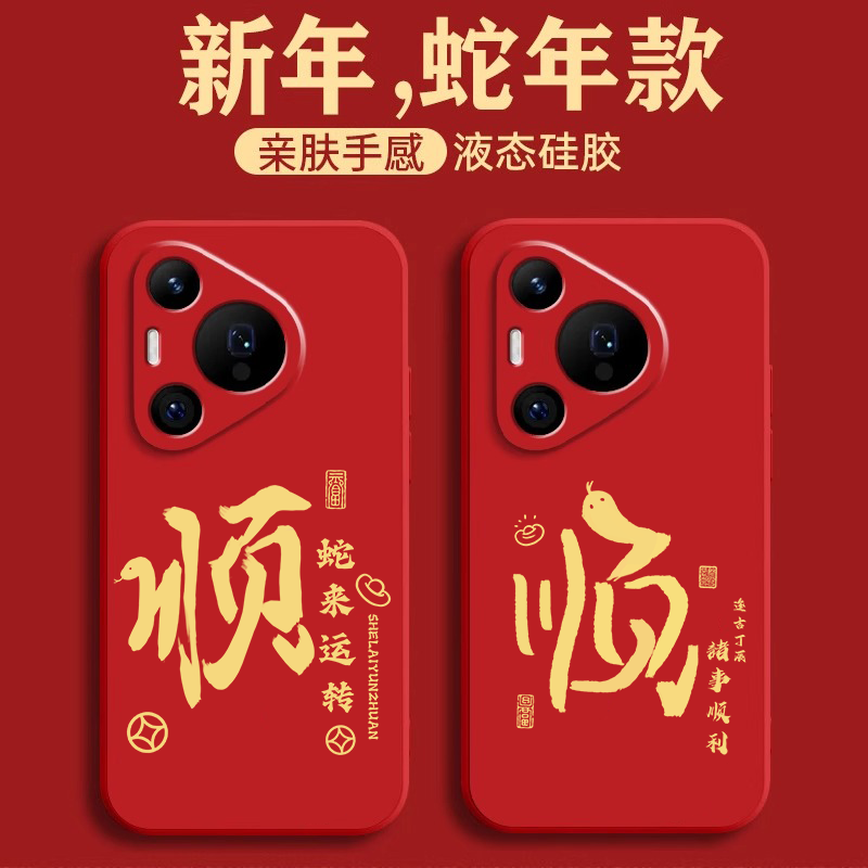蛇来运转适用华为pura70por手机壳新款p60液态硅胶p50新年p40pro高级感挂绳p30本命红色p20防摔por个性保护套