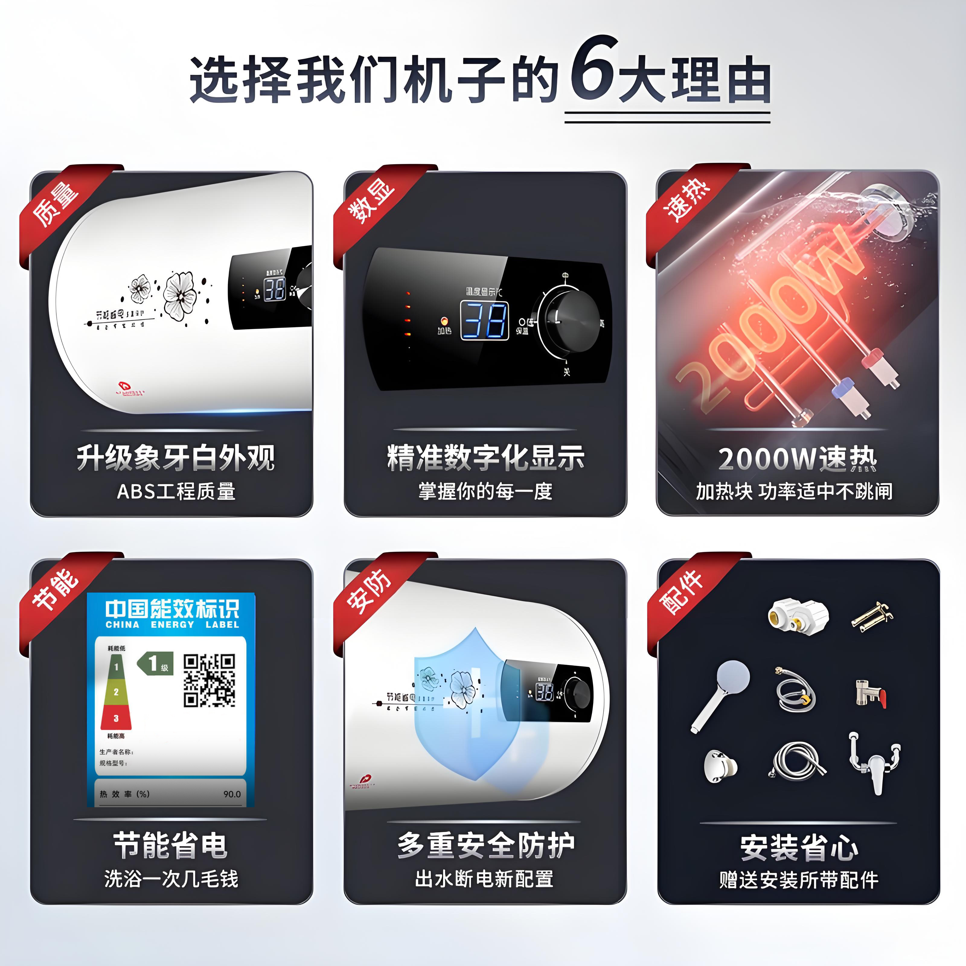 Heiai电热水器洗澡家用卫生间圆桶双胆扁桶储水式出租房1级能效