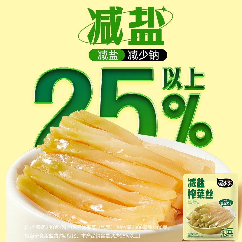 吉香居榨菜咸菜减盐丝萝卜条小袋榨菜32g配饭配粥袋装
