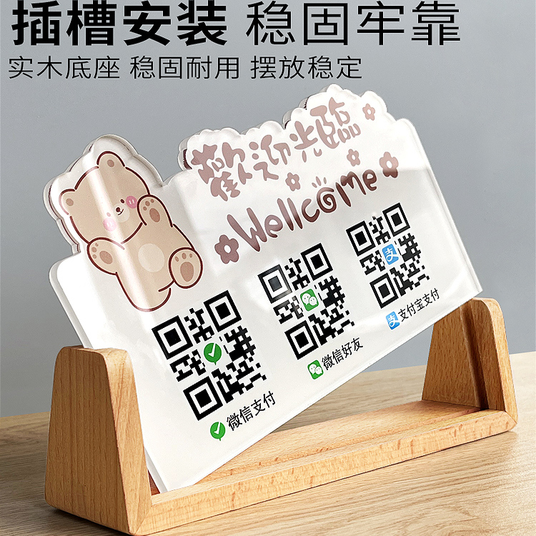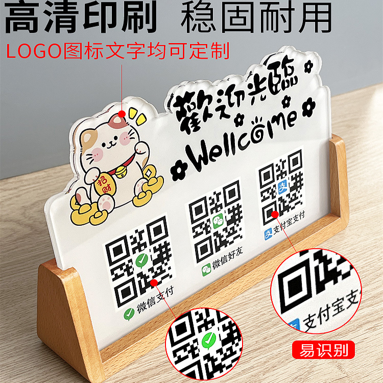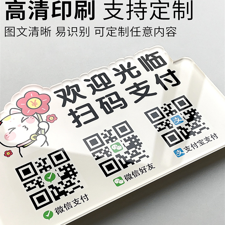 2025新款定制二维码展示牌收款码收银摆台商家店铺微信支付宝收付款立牌制作亚克力高级摆件收钱扫码牌子定做
