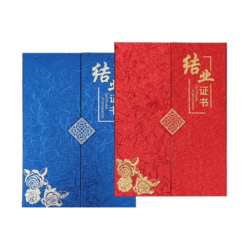 创意欧式三折结业证书烫金外壳A4培训机构学校结营毕业封套送内页定制
