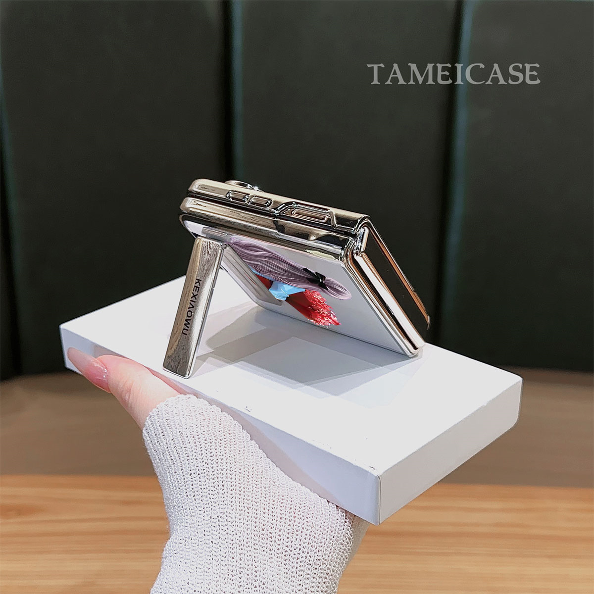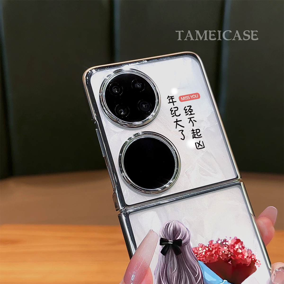 适用于【华为P50POCKET】经不起凶捧花女孩电镀银透明折叠高颜值小清新支架防摔个性励志文案手机壳女款