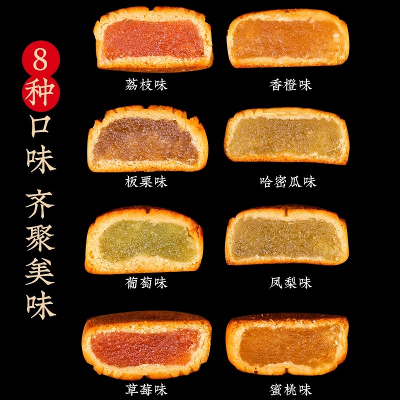 100枚水果味广式月饼八口味水果味中秋零食整箱迷你小月饼5斤散装