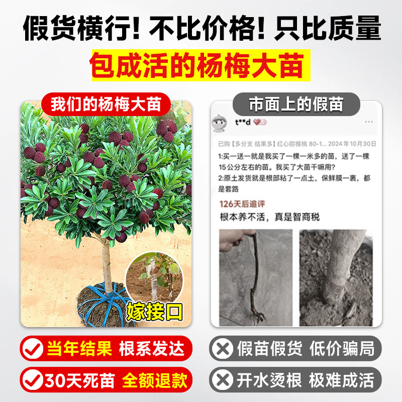 正宗仙居东魁杨梅树树苗带土南北方嫁接果树果苗早熟黑炭当年结果
