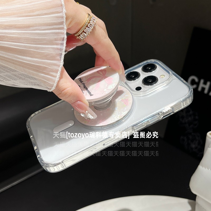 蝴蝶结补妆镜子磁吸手机支架magsafe强力吸附磁力圈气囊气垫背贴式磁铁吸铁桌面磁石贝壳纹镜面女2024新款壳