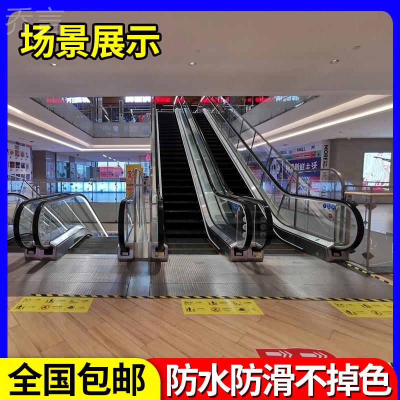 乘坐扶梯安全须知提示地贴防水防滑耐磨车站请勿在此停留小心夹脚电梯口标识标志牌警示牌斜纹地贴可定制