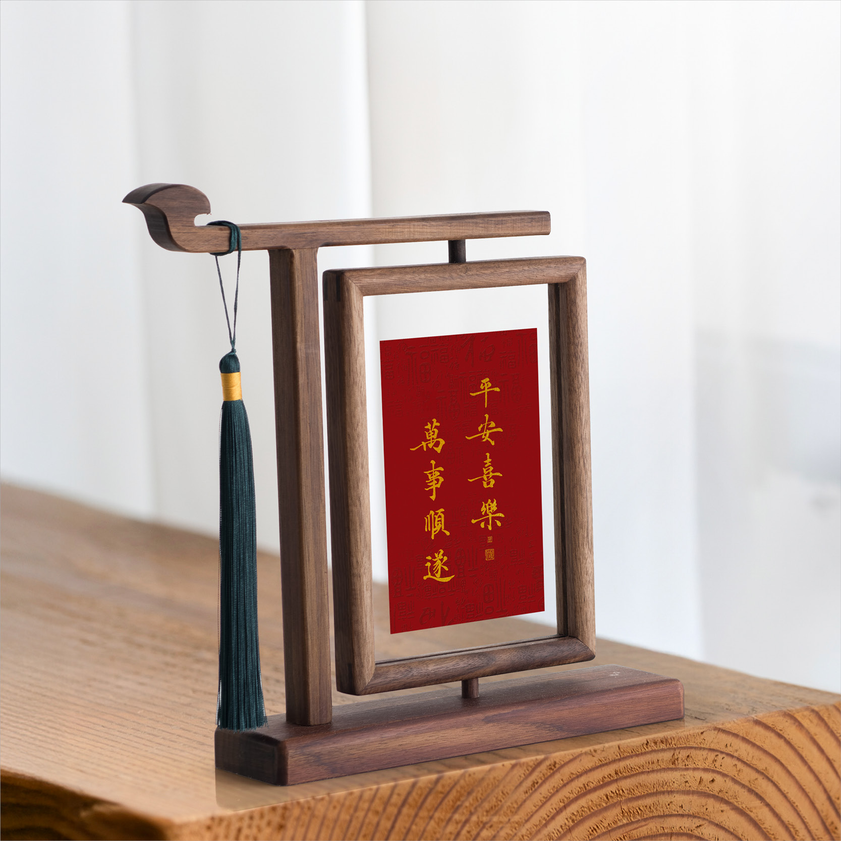实木中式相框旋转双面书法国风摆台中秋教师节礼物定制摆件