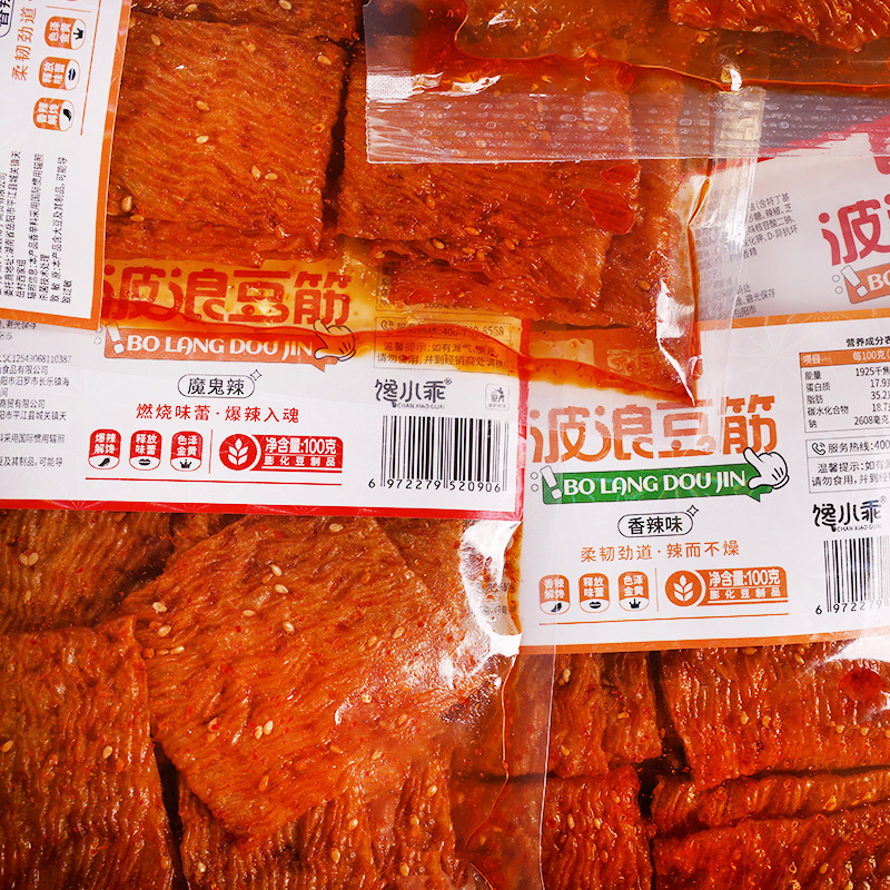 馋小乖波浪豆筋辣条湖南麻辣特产豆皮变态辣鞋底辣条休闲小吃零食