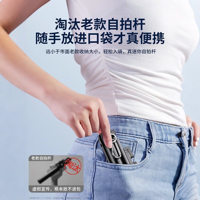 品胜小轻自拍杆迷你旅游便携2025新款通用手机自拍神器360度旋转落地三脚架手持mini蓝牙超轻自拍vlog拍照24