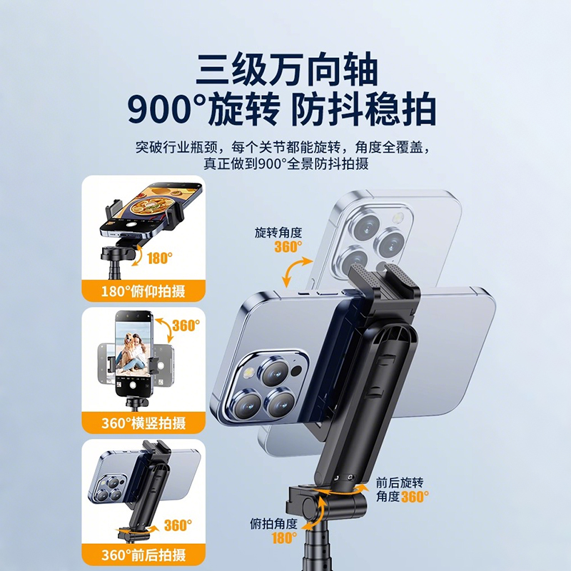 2025新款防抖自拍杆三脚架手机拍摄支架手持便携式全景360度旋转多功能旅游拍照神器抖音落地直播四脚架2025